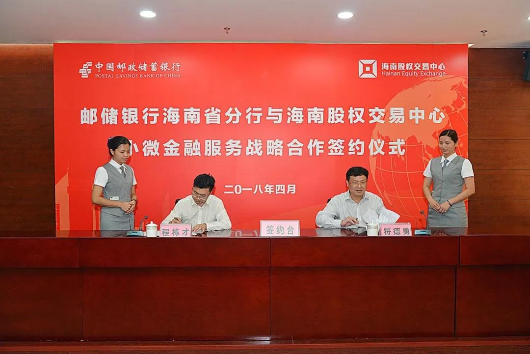 近日,海南股權交易中心(以下簡稱“股交中心”)與郵儲銀行海南省分行舉行小微金融服務戰略合作簽約儀式。股交中心執行總經理程棟才,郵儲銀行海南省分行副行長、三農金融事業部海南分部總監符德勇,省分行小企業金...