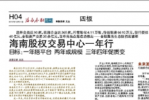3月1日上午,海南股權(quán)交易中心企業(yè)集體掛牌儀式,在海南生態(tài)軟件園B13號(hào)一樓隆重舉行。5家企業(yè)現(xiàn)場(chǎng)集體掛牌,股交中心總裁班淼琦、副總裁吳惠玉和程棟才出席掛牌儀式。海南大信園林股份有限公司海南高升醫(yī)藥科技開發(fā)...