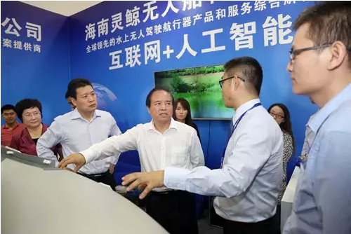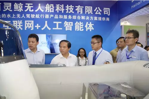 ▲海南省委副書記、省長(zhǎng)劉賜貴一行蒞臨海南靈鯨無(wú)人船科技有限公司展位