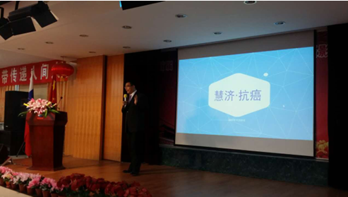 會上,慧濟健康工作人員為來賓們以PPT的形式生動地展示并講解了慧濟平臺所具有的優勢以及未來抗癌醫療行業的發展方向,精彩的演講贏得了現場陣陣掌聲。