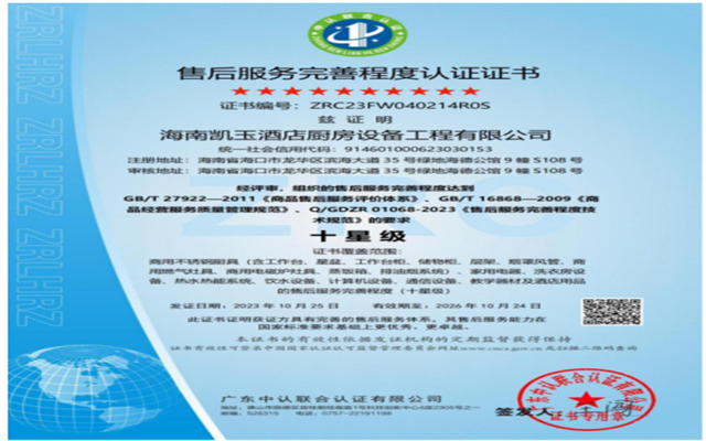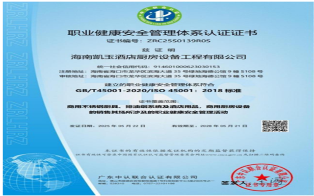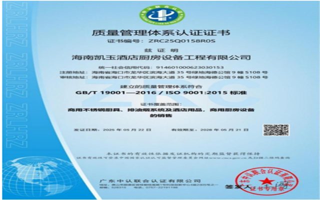 海南凱玉酒店廚房設備工程有限公司(以下簡稱凱玉廚具或我司)成立于2013年,注冊資金2800萬,地處海南省海口市。歷經多年發展,已在海南股權交易中心上市,是海南省行業中率先獲得十星級售后服務證書,通過ISO9001:2015質量管理體系認證、ISO14001:2015環境管理體系認證、GB/T45001-2020職業健康安全管理體系認證、AAA企業信用等級認證、中國安全生產標準化一級企業認證、中國廚房設備工程行業一級認證、燃氣燃燒器具安裝維修能力一級認證、采用國際標準認證并由政府部門審查頒發證書的企業(詳見專業資質文件),一般納稅人A級信用企業、海南省酒店與餐飲行業協會副會長單位、中國廚具行業十大品牌、中國著名品牌、2021年度中國國際飯店業優質廚房設備供應商推薦品牌、2022年度中國飯店業高質量發展設備供應商品牌、酒店用品與設備供應商等級認證甲級企業、國家高新技術企業、專精特新企業、海南省專精特新中小企業證書。 本公司擁有自主產權辦公大樓、產品體驗中心以及自主生產基地(位于海南省海口市龍華區城西鎮蒼嶧二路4號,園區面積達1245平方米,購置行業內一流生產加工設備),擁有多項產品專利技術,創立了椰爐、椰灶兩大爐具自主品牌,主要為大型星級酒店、大型企事業單位、地產公司、餐飲企業等提供專業的廚房設備及排油煙系統供貨、安裝及設計服務。