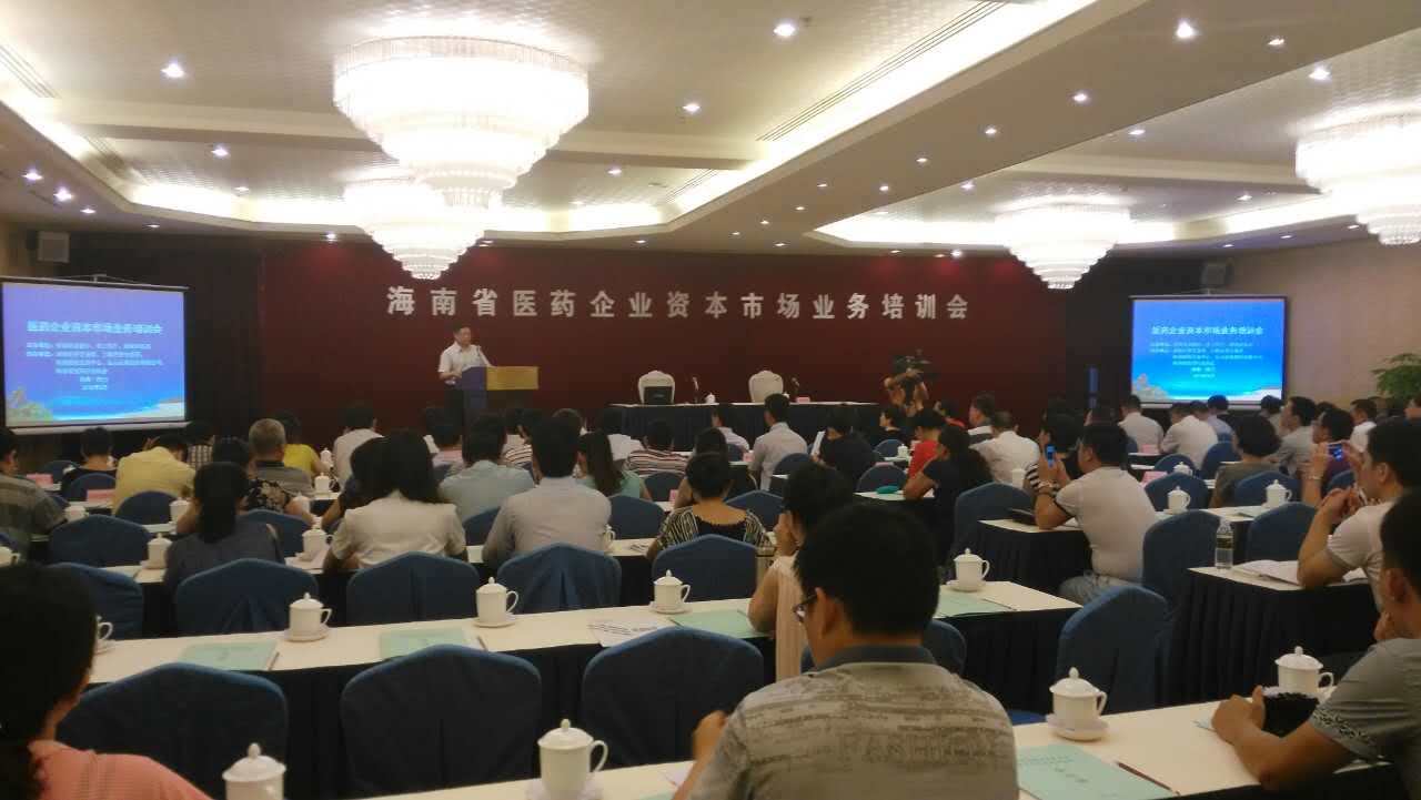 6月26日,海南省醫藥企業資本市場業務培訓會在??阱緧u泰得大酒店順利召開,會議由省金融辦、省工信廳、海南證監局主辦,深圳證券交易所、上海證券交易所、海南股權交易中心、金元證券股份有限公司和海南省醫藥行業協會協辦。