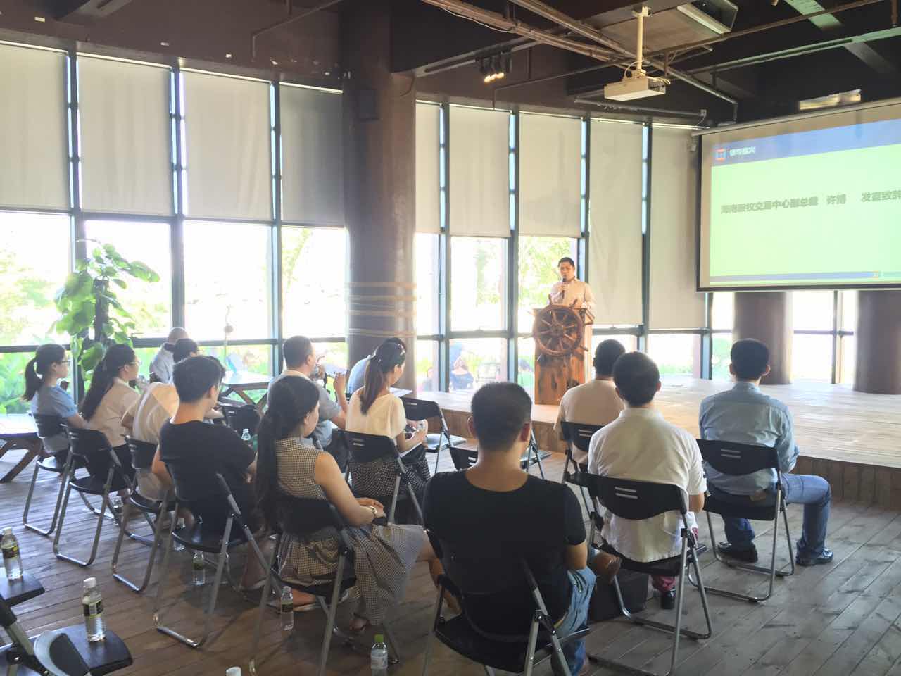 7月20日上午,海南股權交易中心在海口市美蘭區海甸五東路星海灣水岸風情街b6區玉螺眾創空間舉辦第14期企業培訓活動,10家農業企業參加了本次活動,股交中心副總裁許博出席活動。