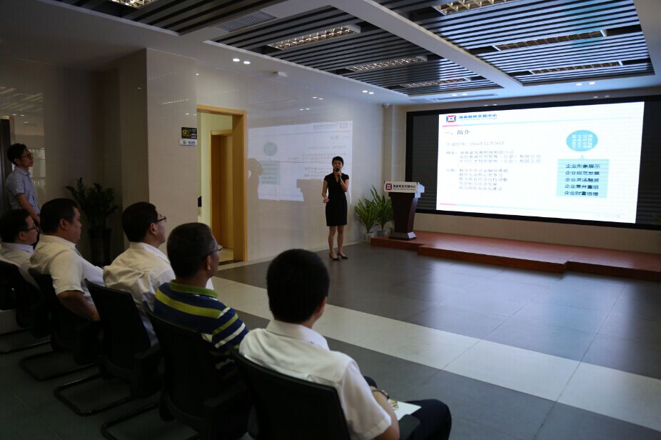 海南股權交易中心副總裁吳惠玉整體匯報了股交中心的成立背景、股東結構、行業狀況、商業模式、運營現狀以及發展規劃,并重點介紹了股交中心路演、培訓、咨詢、企業家交流等四大服務平臺的運營情況,以及股交中心在創新金融業務的研究探索、市場開拓和風控措施。