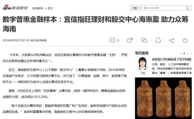 宜信指旺理財(cái)和股交中心?;萦?/strong>助力眾籌海南