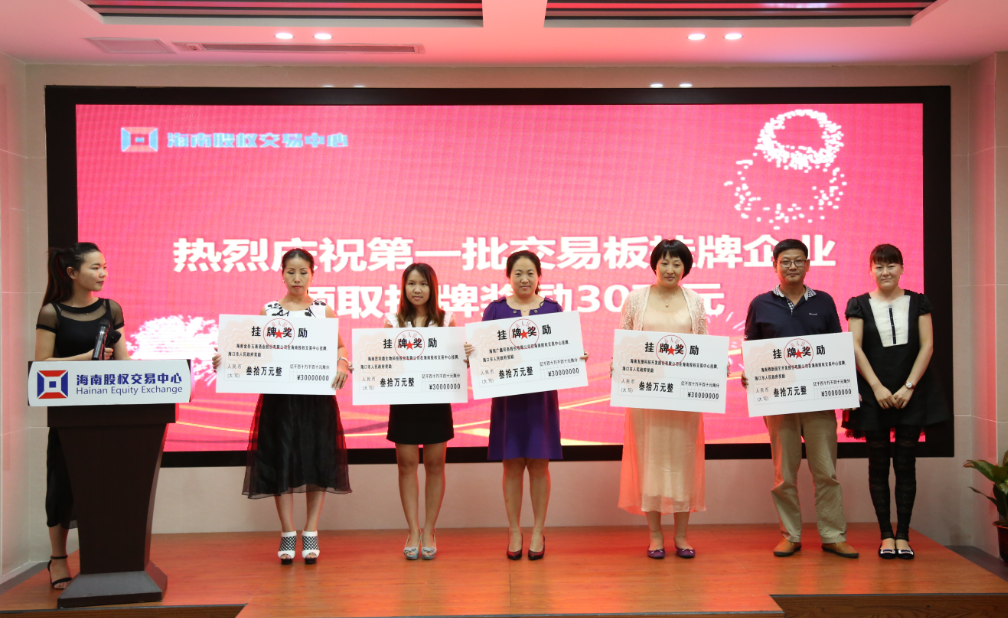 9月11日下午,海南股權交易中心掛牌企業獎勵發放儀式在海南生態軟件園B13號舉辦。??谑胸斦指惶旆鸥本珠L、企業處曾文麗處長和海口市金融辦馬濟淵副主任出席了活動,海口市首批10家交易板掛牌企業分別獲得了30萬元的財政獎勵。