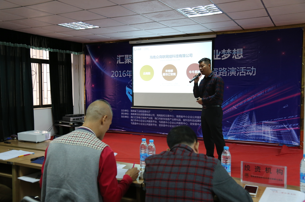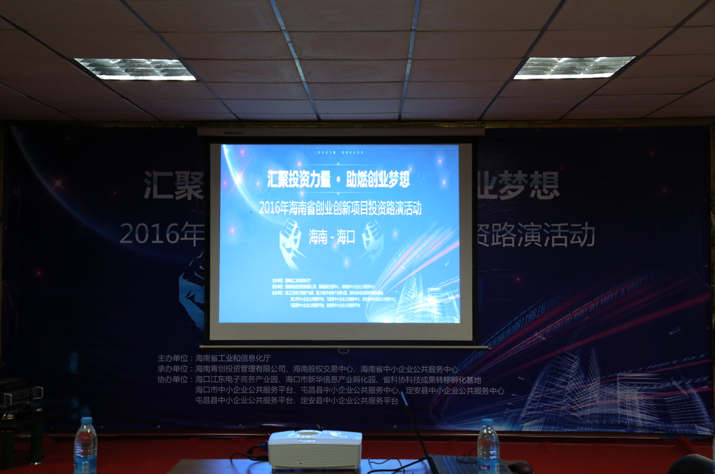 11月24日,“匯聚投資力量,助燃創業夢想——2016年海南省創業創新項目投資路演”在海南省科技活動中心順利舉行,同時這也是海南股權交易中心第16期企業路演。活動由海南省工業和信息化廳主辦,海南股權交易中心、海南青創投資管理有限公司、海南省中小企業服務中心聯合承辦,??诮瓥|電子商務產業園等多家單位協辦。9家路演企業、團隊及6家投資機構參加此次路演活動。