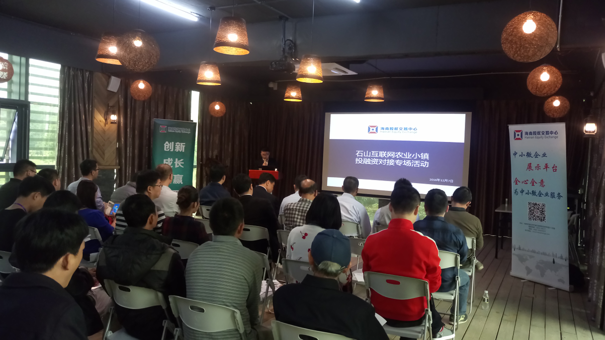 12月7日,石山互聯網農業小鎮投融資對接專場活動在石山互聯網農業小鎮運營中心成功舉行。此次對接會由石山鎮人民政府主辦,海南股權交易中心、石山互聯網農業小鎮運營中心共同承辦。中共??谑行阌^委常委、石山鎮委書記胡余亨,??谑行阌^石山鎮人民政府副鎮長胡煒彬,海南股權交易中心副總裁許博、投資機構、石山鎮企業代表及合作社參加了本次活動。