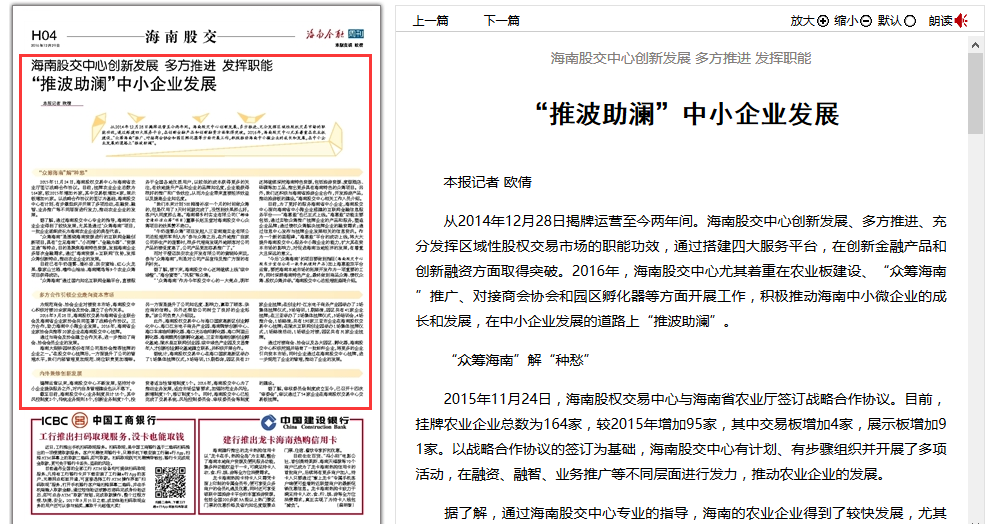 近日,證券導報以兩個版面整版報道海南股權交易中心兩周年,關注股交中心兩年以來的發展。