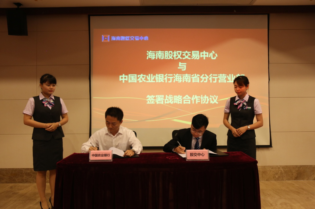 為整合資源,發揮各自優勢,股交中心與農行海南省分行營業部共同簽署戰略合作協議,雙方表示將進一步加深合作,為中小微企業的發展發揮更大、更強的作用。