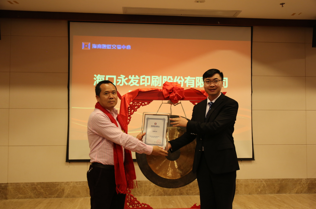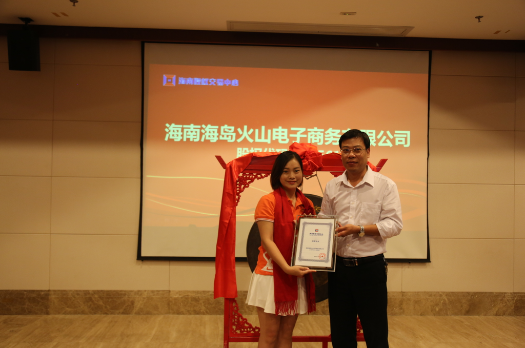 現場的企業集體掛牌儀式上,程棟才、林道冠、陳沖分別為海口永發印刷股份有限公司、海南艾納香生物科技發展股份有限公司、海南海島火山電子商務有限公司3家企業頒發證書并與企業代表合影。掛牌企業還就自身的核心產品、經營情況和業務內容進行了推介和宣講。