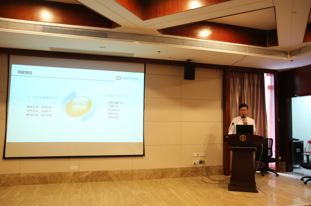 最后的培訓環節,股交中心以“區域股交中心助力中小微企業發展”為主題作中小微企業如何對接資本市場專題培訓。股交中心代表分析了國務院及海南省推動區域性股權交易市場發展的舉措及資本市場的發展情況,詳細講解了國內多層次資本市場體系,并就股交中心開展的培訓、咨詢、路演、企業家沙龍、眾籌等工作作了深入的介紹。