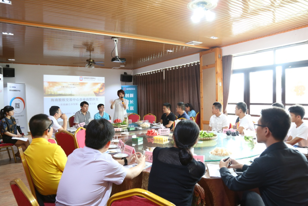6月9日下午,由海南股權交易中心主辦、海南省農業交流協會協辦,第十一期“農旅融合齊發展,共享農莊新天地”主題沙龍在海口香世界莊園舉行,齊聚企業家共同探討農業旅游業發展。股交中心副總經理程棟才,海南省農業交流協會主席周大衛,海南銀行、海口蘇南村鎮銀行,以及農業旅游業企業代表參加。
