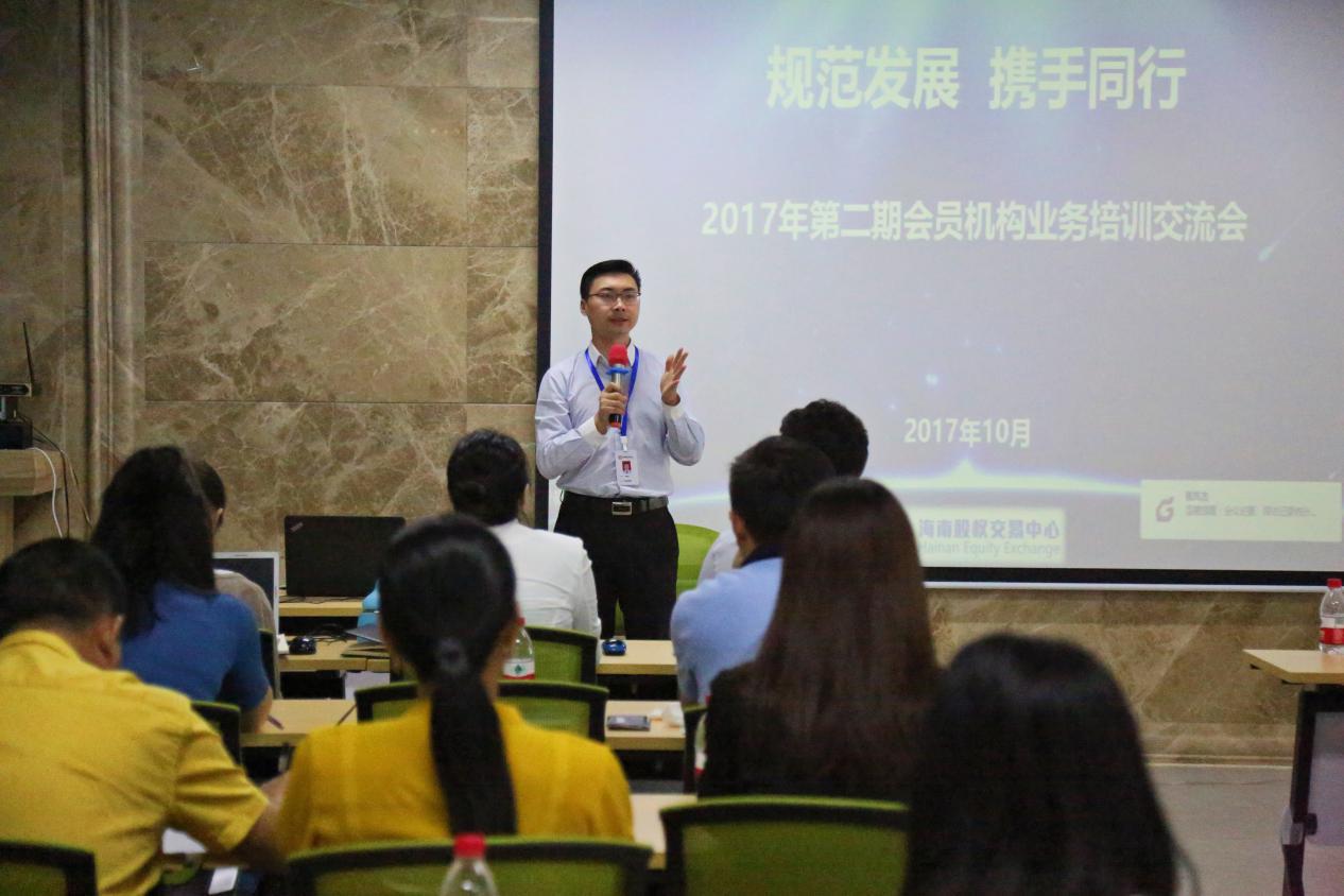 10月19日上午,海南股權(quán)交易中心舉辦2017年第二期會員機構(gòu)業(yè)務(wù)培訓(xùn)交流會,20家會員機構(gòu)代表參加交流會。