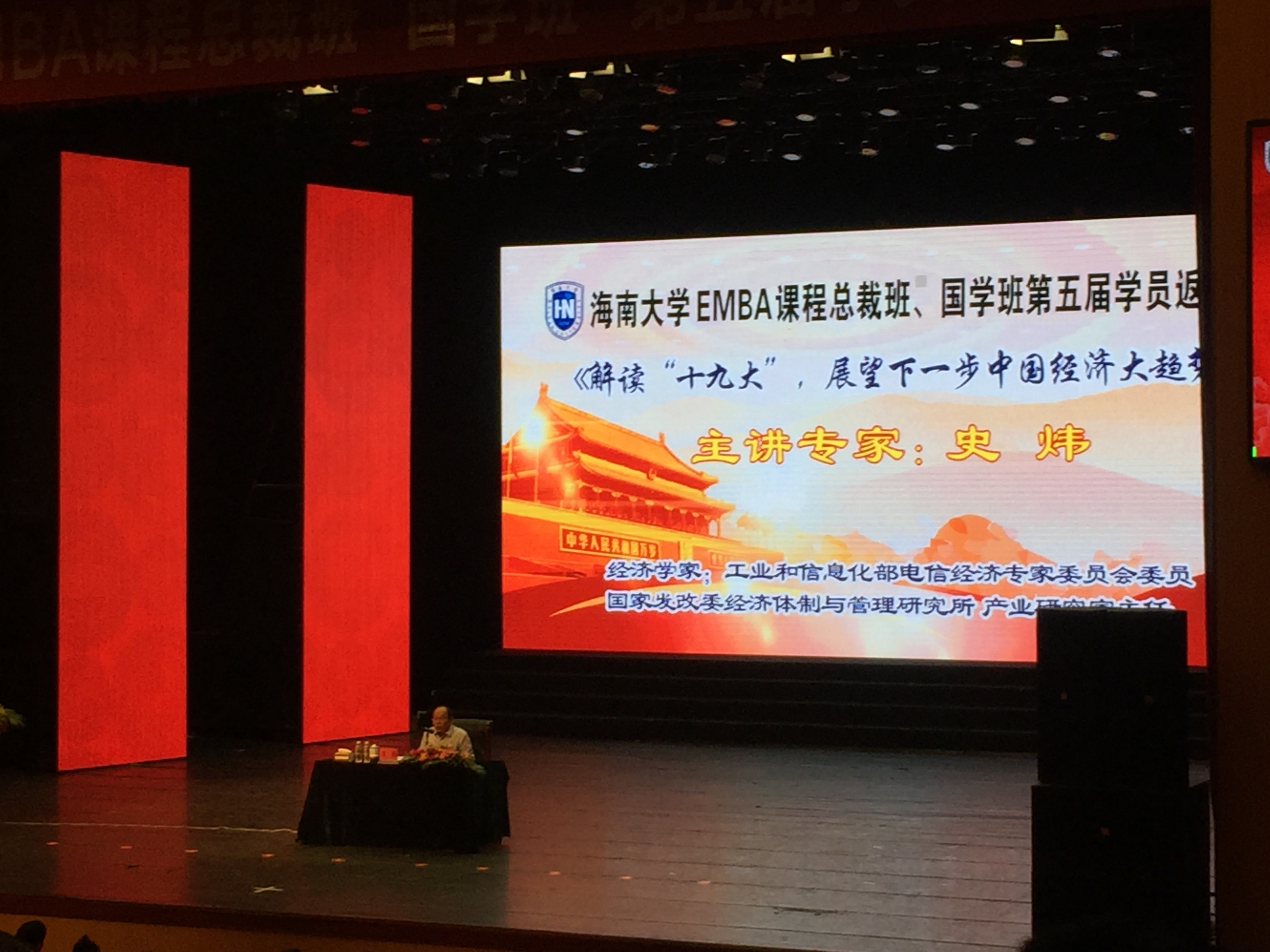 活動第一天,由經濟學家史煒現場解讀今年“十九大”報告,并根據報告,就下一步中國經濟大趨勢進行分析講解,與學員們就當下經濟發展進行了交流與溝通。未來兩天,還將有嘉賓導師汪大正及劉少華圍繞“重塑管理者,提升領導力”及“迭代創業,讓轉型升級走向卓越”等兩個主題開展課程培訓。