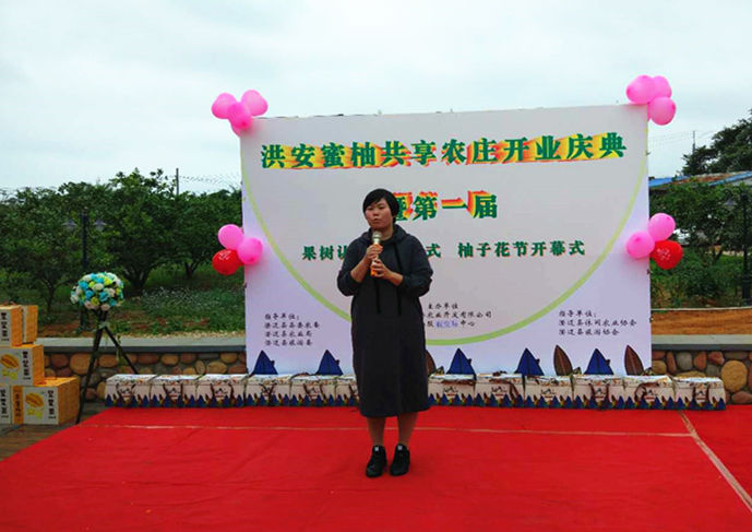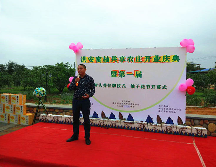 洪安蜜柚果樹認(rèn)籌者代表現(xiàn)場發(fā)言。“柚子正宗,雖然價格貴,但是因為品質(zhì)好,口感好,得到許多消費者的認(rèn)可。”