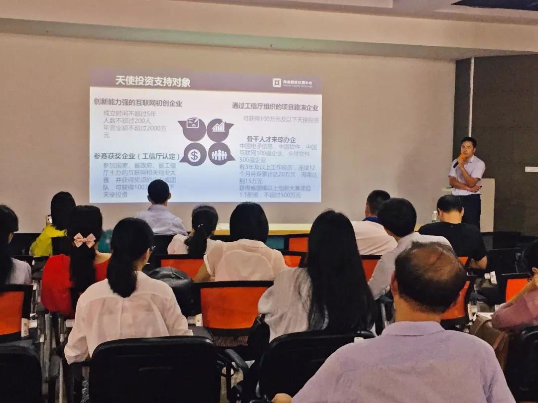 股交中心機構合作部負責人蔣文斌為在場企業介紹了區域性股權交易市場的現狀及股交中心的發展狀況,并就“股交中心如何助力海南高新技術及科技型企業發展”這一核心問題進行了詳細的說明和講解,同時,向在場的企業介紹了股交中心于6月20日正式設立的海南首個專注于互聯網初創企業天使投資的服務板塊“天使板”及天使投資相關情況,鼓勵和歡迎高新技術及科技型企業掛牌天使板,通過天使板實現企業融資和發展的目標。