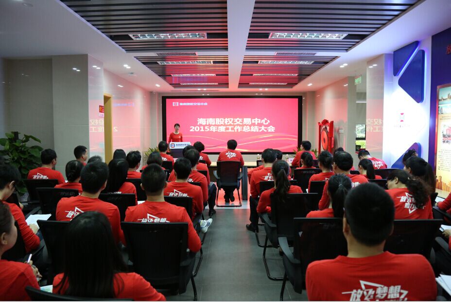1月7日下午,新年伊始,海南股權交易中心在海南老城經濟開發區海南生態軟件園B13號樓召開了2015年度工作總結會議。會議對2015年度工作進行總結,并對2016年工作做了規劃,股交中心董事長李曉剛,總裁班淼琦,副總裁吳惠玉、陸瑋、程棟才,以及股交中心海南、北京、上海、深圳四地的全體員工參加了本次會議。