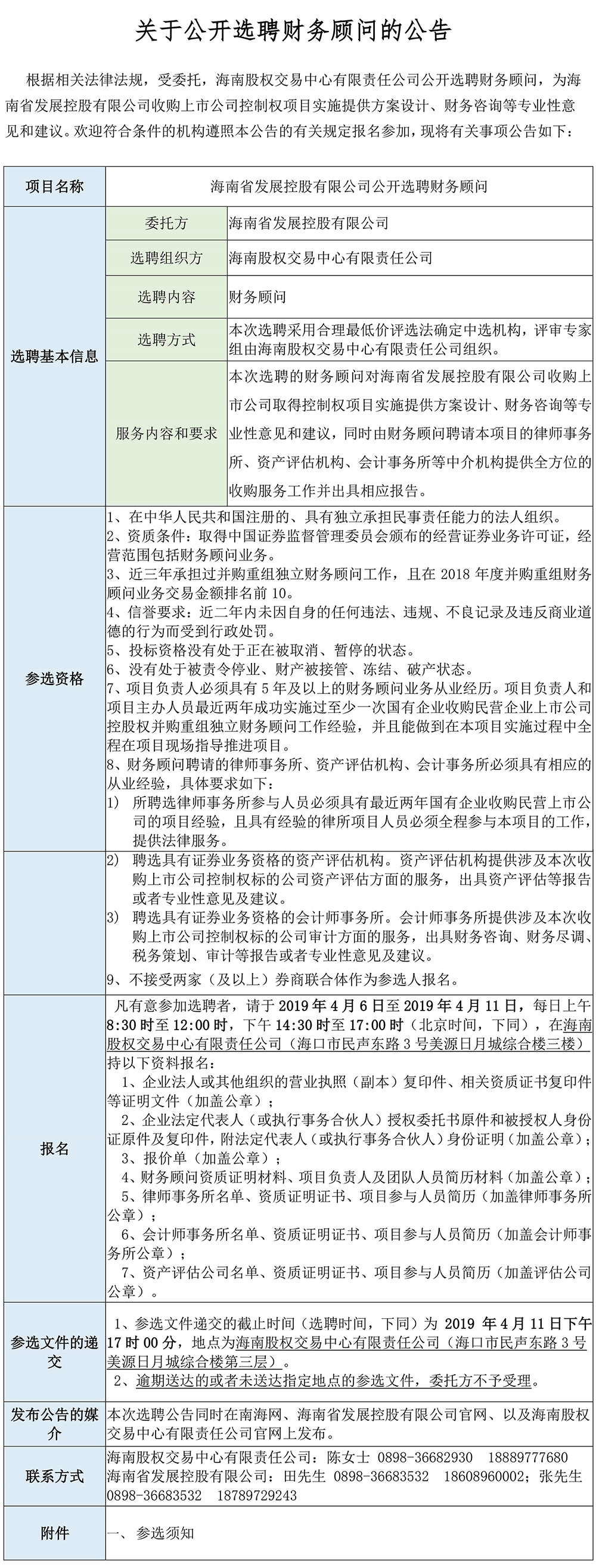 【公開選聘】海南省發展控股有限公司公開選聘財務顧問