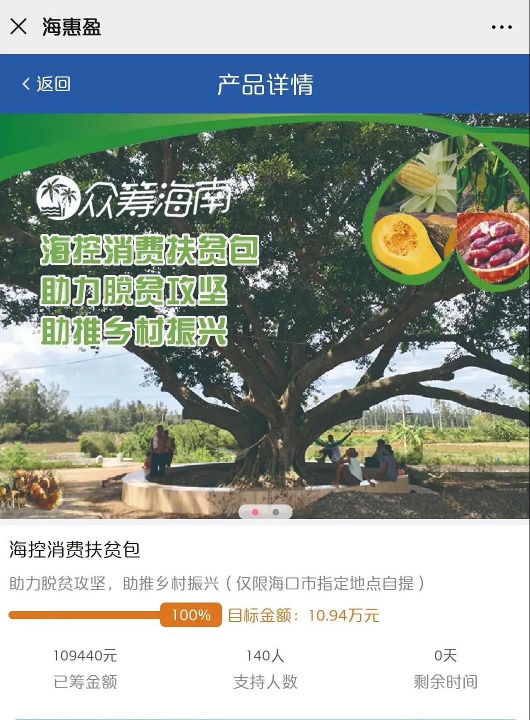 為認真貫徹落實習近平總書記關(guān)于開展消費扶貧行動的重要指示精神,有效應(yīng)對疫情對我省農(nóng)產(chǎn)品產(chǎn)銷及貧困戶穩(wěn)定脫貧造成的不利影響,在總公司海南省發(fā)展控股有限公司(以下簡稱“海南控股”)的統(tǒng)籌指導下,海南股交充分利用旗下“海惠盈”微信平臺的功能優(yōu)勢,推出“海控消費扶貧包”產(chǎn)品眾籌項目,以實際行動為貧困戶“帶貨”,助力打贏脫貧攻堅戰(zhàn),一起扶貧“買買買”!
