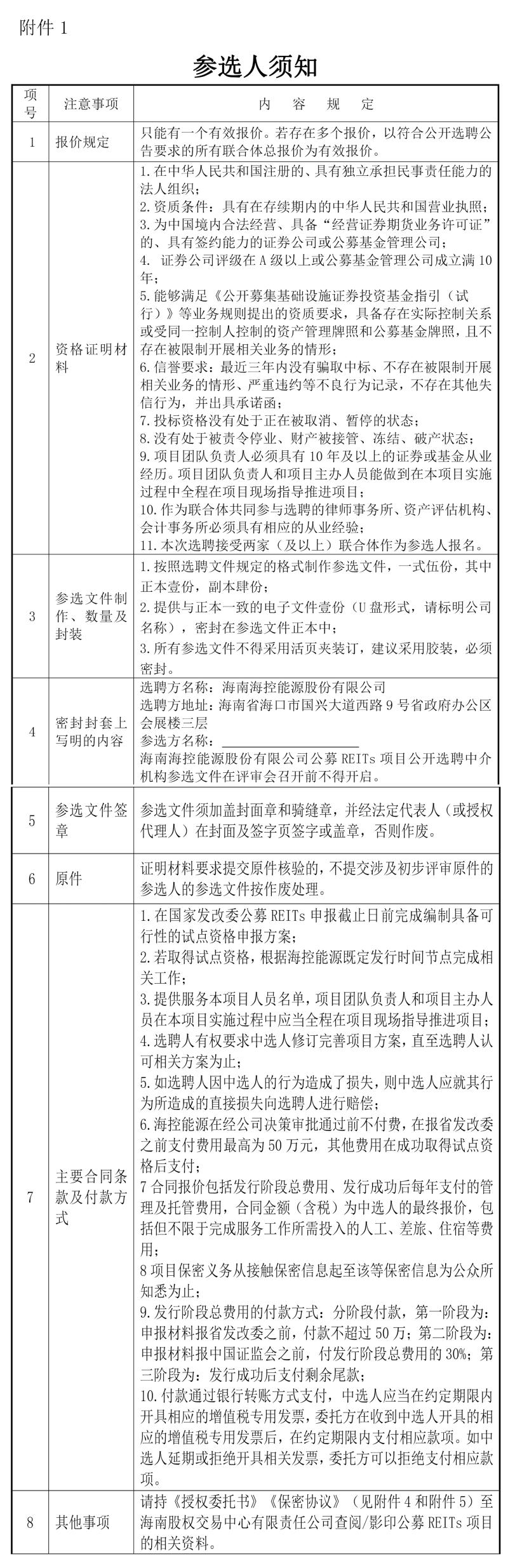 關于海控能源公募REITs項目公開選聘中介機構的公告
