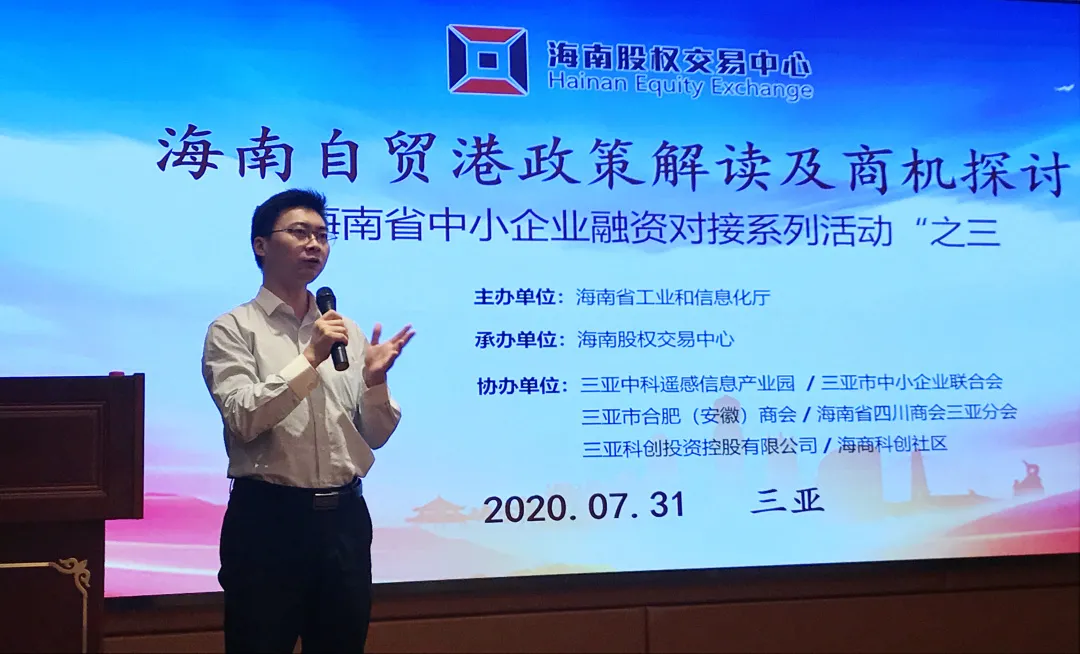 此次活動是由海南省工業和信息化廳主辦,海南股交承辦的“海南省中小企業融資對接服務系列活動”第三場免費培訓講座。由三亞中科遙感信息產業園、三亞市中小企業聯合會、海商科創社區、三亞科創投資控股有限公司、三亞市合肥(安徽)商會、海南省四川商會三亞分會等單位共同協辦。本次活動得到了三亞多家企業的積極響應和支持,共計67家當地企業派代表參加。