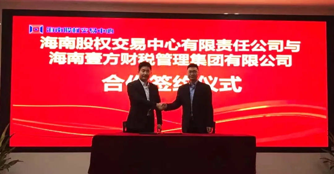 12月14日下午,海南股交與海南壹方財稅管理集團有限公司(以下簡稱“壹方財稅集團”)在澄邁老城軟件園舉行商務服務合作簽約儀式。雙方本著平等互利、資源共享、優勢互補的原則,建立合作伙伴關系,拓展雙方業務領域,實現互惠共贏。海南股交執行總經理程棟才、總經理助理卜麗麗、壹方財稅集團總裁胡天宇、營銷副總裁陳雷參加了簽約儀式。
