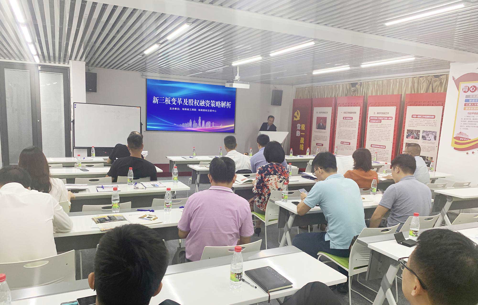為促進我省中小企業把握當前多層次資本市場特點和國家政策方向,提升戰略決策能力并做好資本路徑規劃,由海南省工商聯、海南股權交易中心聯合主辦的“資本市場最新情況解讀---新三板變革及股權融資策略解析”專題講座在??跒I海國際電子商務產業園如期舉行,海南本地40余家企業參加本次活動。