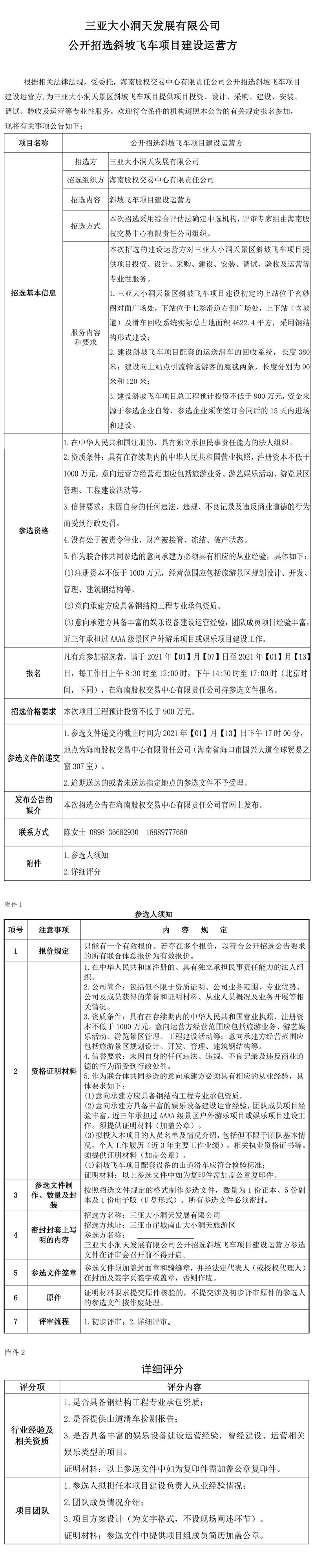 關于三亞大小洞天發展有限公司公開招選斜坡飛車項目建設運營方的公告
