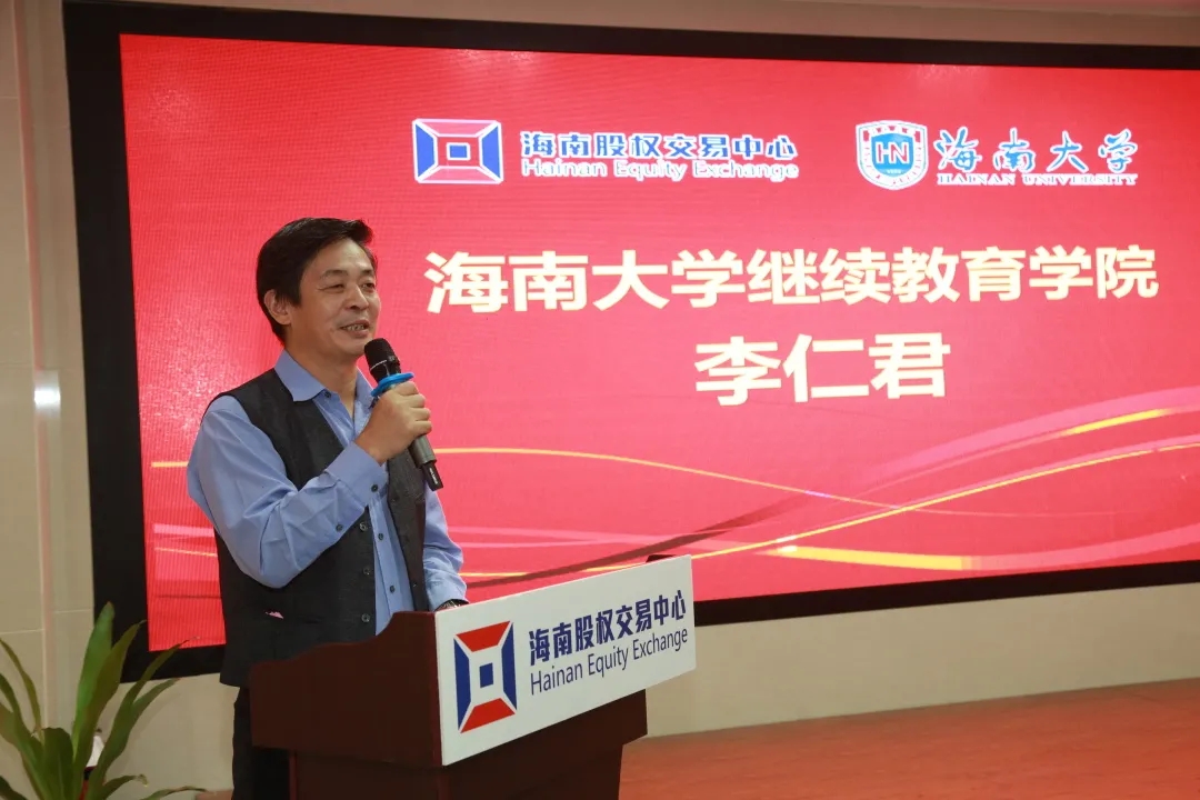 吳杰向李仁君院長(zhǎng)和在場(chǎng)的企業(yè)家學(xué)員表示熱烈歡迎。他表示,海南股交與海南大學(xué)繼續(xù)教育學(xué)院頂層邏輯匹配,客群畫像高度吻合,合作站位高、立意深。海大繼續(xù)教育學(xué)院在海南股交設(shè)立教學(xué)實(shí)踐基地,是對(duì)海南股交專業(yè)能力的重視與認(rèn)可,也是雙方發(fā)揮各自資源優(yōu)勢(shì)、搭建校企合作平臺(tái)、加強(qiáng)交流與協(xié)作的務(wù)實(shí)舉措。