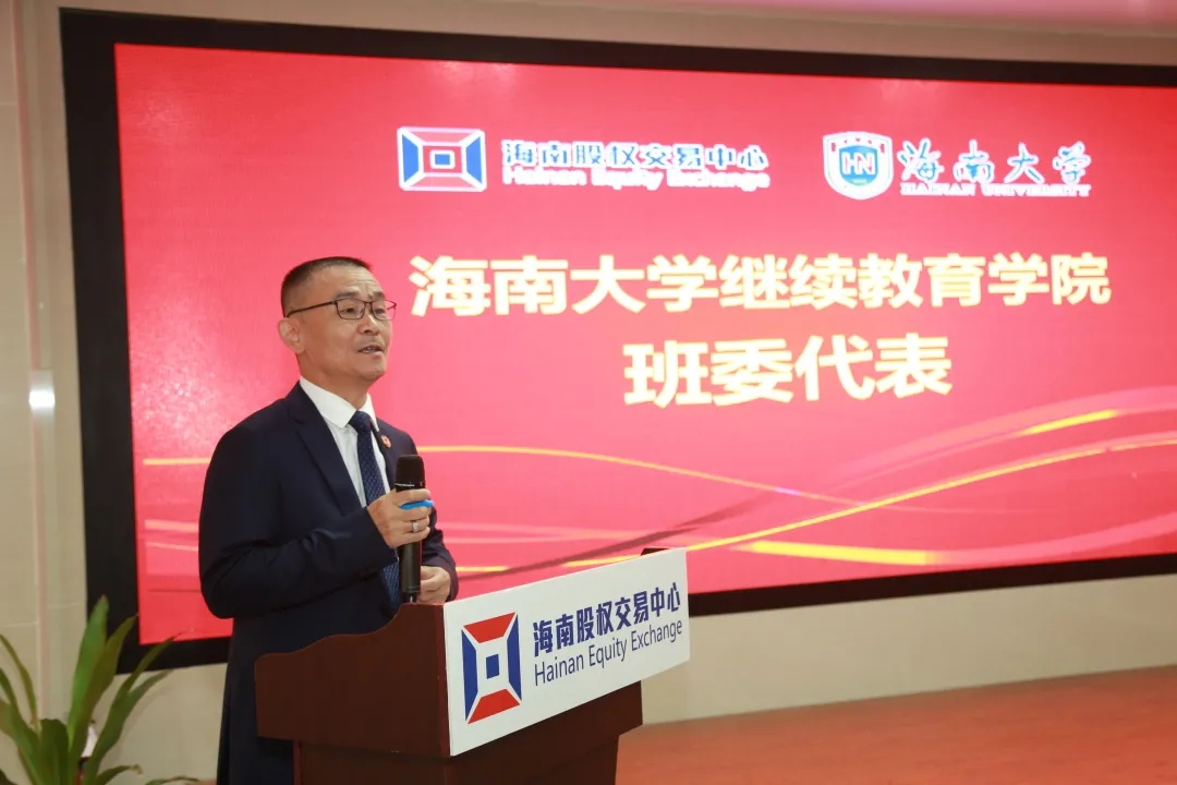海大資本班班委代表、中青城市建設(shè)(海南)集團(tuán)有限公司董事長(zhǎng)徐元芳進(jìn)行了熱情洋溢的發(fā)言。