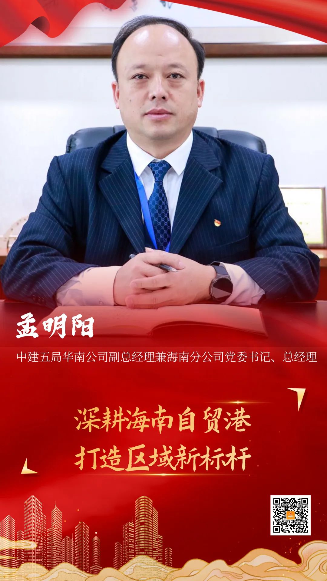 海南省五一勞動(dòng)獎(jiǎng)?wù)芦@得者,中建五局華南公司副總經(jīng)理兼海南分公司黨委書記、總經(jīng)理孟明陽(yáng):