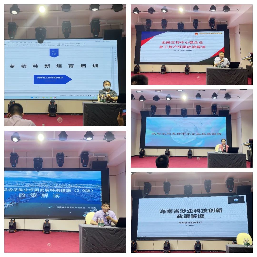 政策宣貫采取“線上+線下”的形式進行。會上,省財政廳、省發改委、省金融監管局、省科技廳、省工信廳等政府部門代表分別就政府采購支持中小企業政策、海南省穩經濟助企紓困發展特別措施(2.0版)、金融支持中小微企業復工復產、海南省涉企科技創新政策以及保障中小企業款項支付條例、中小企業紓困幫扶力度的若干措施及工信財政措施實施細則等惠企紓困政策進行解讀。其中創新型中小企業、專精特新中小企業和專精特新“小巨人”企業的申報條件、促進經濟高質量發展(工信領域)財政支持措施、貸款貼息、應收貸款融資等宣貫內容,吸引了在場多家企業的關注。省工信廳向參會企業發放《減輕企業負擔政策匯編(2022)》手冊,幫助企業更好地了解政策、把握政策、享受政策。