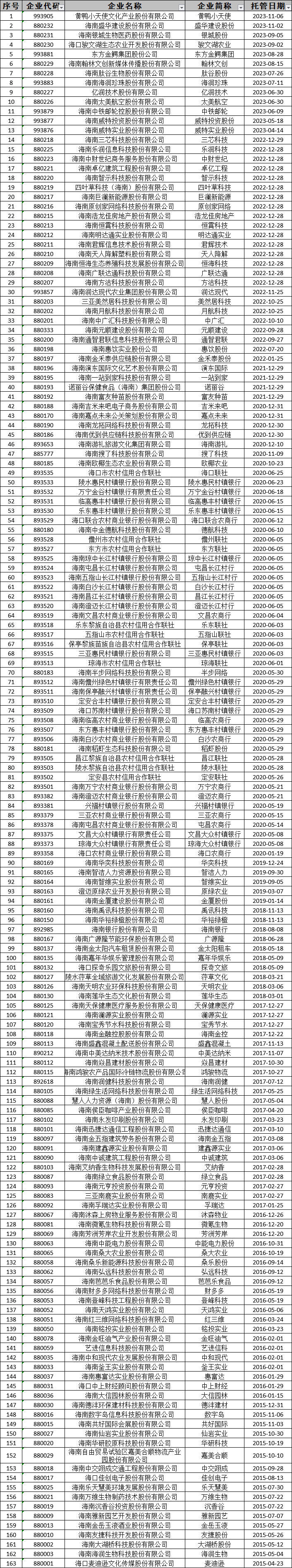 海南股權交易中心有限責任公司 股權登記托管企業名單公示公告