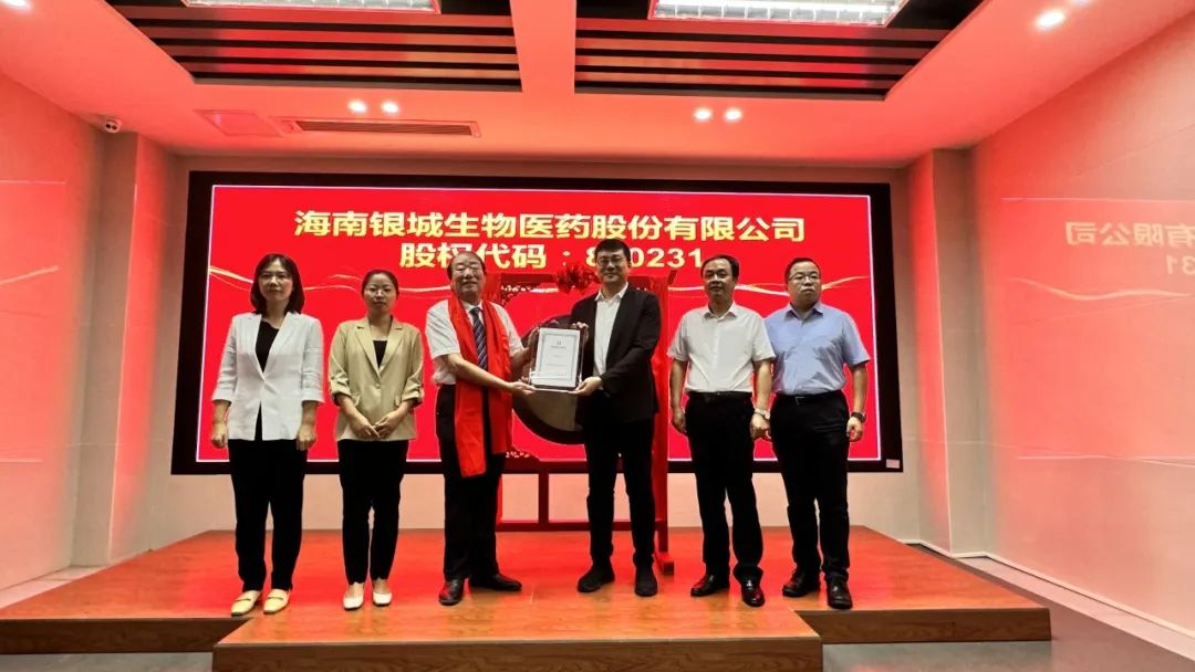 10月13日上午,海南股交老城軟件園辦公樓內再次響起掛牌的敲鑼聲,在現場嘉賓的見證下,海南銀城生物醫藥股份有限公司(以下簡稱“海南銀城生物”)正式在海南股交交易板掛牌。海南省工信廳消費品工業處一級調研員楊興旺(主持工作)、產業發展處副處長胡泊,海南金融控股股份有限公司黨總支委員、總經理助理、海南股權交易中心董事長朱磊、總經理吳杰,海口高新區海口國科中心招商總監鄧文姣,海南自貿港基金會總經理皮韜略,深圳美格爾生物醫療集團有限公司董事長李金元等領導嘉賓出席了本次掛牌儀式。
