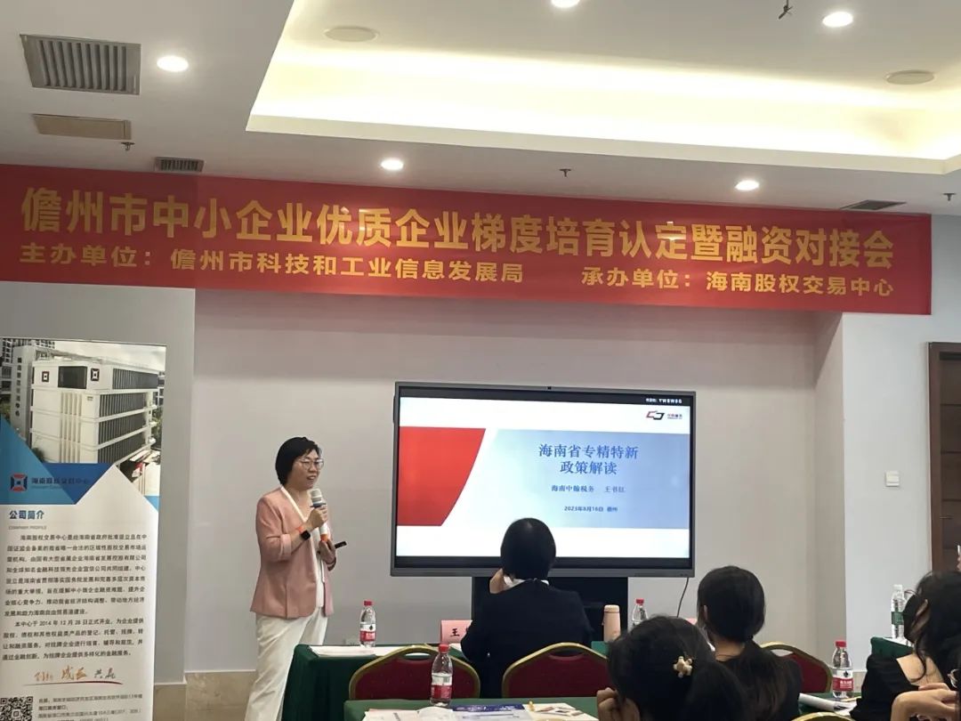 上午的活動在儋州市洋浦經濟開發區佰麗海景酒店舉辦。活動首先由海南中翰紅日誠稅務師事務所創始人王書紅作“專精特新”企業政策解讀,幫助企業全面深入了解優質企業梯度培訓政策,并從企業財務稅務處理和財稅政策應用方面著重說明了企業應如何不斷提高自身管理水平,通過規范發展拓寬融資渠道,補短板、強弱項,走“專精特新”發展道路。