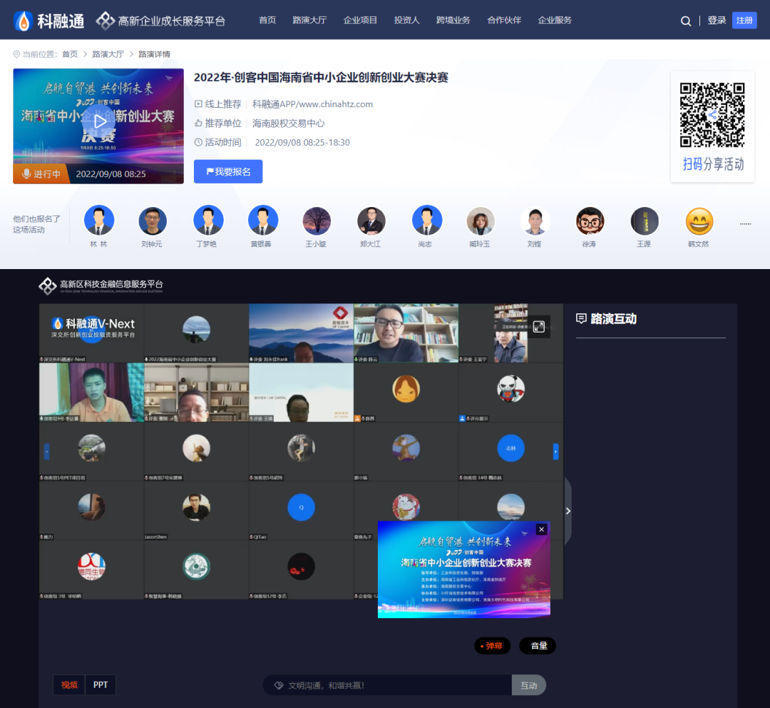 做為第七屆“創客中國”中小企業創新創業大賽海南賽區的承辦單位,在海南省工信廳的指導下,以及省內企政府相關部門、園區及服務機構的大力支持下,海南股權交易中心積極響應、精心組織,全程參與大賽的對接服務工作,通過線上線下為參賽項目提供賽事組織、賽前培訓、沖刺輔導等一系列活動,保障了大賽的順利組織及后續服務。自海南賽區啟動以來,共有290個企業與創客組踴躍報名參加,涉及生物醫藥、數字經濟、區塊鏈、智能制造、新能源、5G技術及運用等眾多領域。