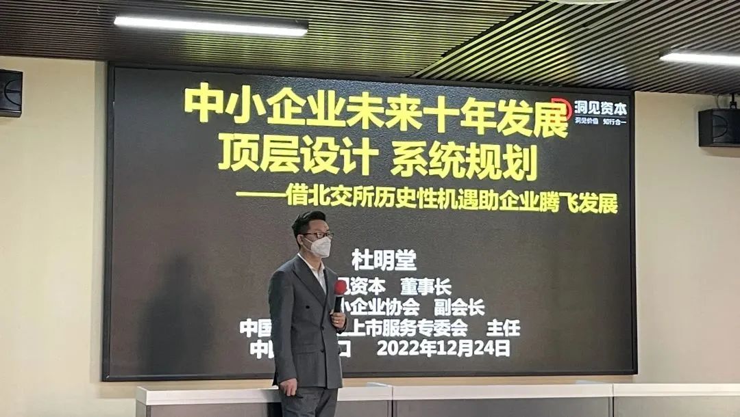 12月24日,“直通北交所,邁向IPO”專題培訓活動在海口舉辦,活動特邀中小企業(yè)上市服務專委會資深專家講師,為我市“專精特新”企業(yè)、“小升規(guī)”培育企業(yè)及對北交所、資本運作、IPO上市有意向需求的相關企業(yè)提供政策解讀并進行面對面交流,推動我市企業(yè)搶抓北交所設立帶來的多層次資本市場改革機遇,構(gòu)建正確的企業(yè)資本運作知識框架體系,借力資本市場力量發(fā)展壯大,更好服務我市經(jīng)濟高質(zhì)量發(fā)展。