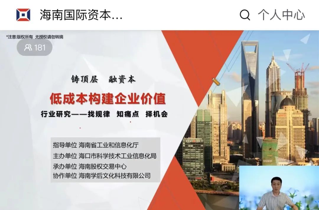 中小企業(yè)是經(jīng)濟(jì)和社會(huì)發(fā)展的主力軍,在促進(jìn)增長(zhǎng)、保障就業(yè)、活躍市場(chǎng)、改善民生等方面發(fā)揮著重要作用。近年來,海口市委市政府高度重視我市中小企業(yè)的發(fā)展。為營(yíng)造我市中小企業(yè)發(fā)展良好環(huán)境,加快推動(dòng)我市中小企業(yè)實(shí)現(xiàn)高質(zhì)量發(fā)展,海南股交緊密結(jié)合海口市科工信局工作部署,根據(jù)我市中小企業(yè)發(fā)展需求,從2022年12月起連續(xù)開展多場(chǎng)次的企業(yè)發(fā)展系列培訓(xùn)活動(dòng)。