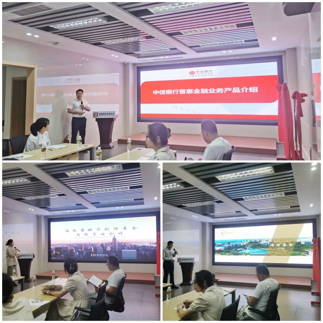 會上,中信銀行、澄邁發展基金及省融擔基金等多家金融機構就各自金融信貸政策和信貸產品進行宣介。