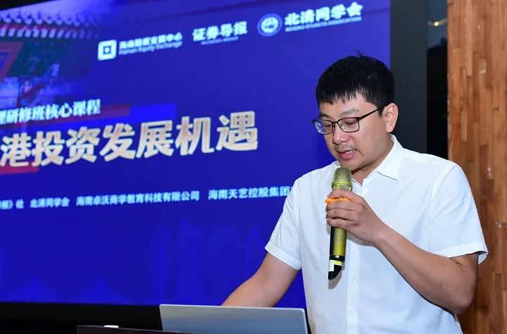 中國科學院博士、海南股交專家沈宇庭現場作《世界的海南-全球趨勢機遇》《中國的海南-企業投資機遇》主題授課,從全球經濟形勢、海南自由貿易港政策、海南自由貿易港投資機遇等多個方面,深入淺出、詼諧幽默地向學員講述新形勢下海南自由貿易港的投資發展新機遇,精彩的分享贏得現場陣陣掌聲。
