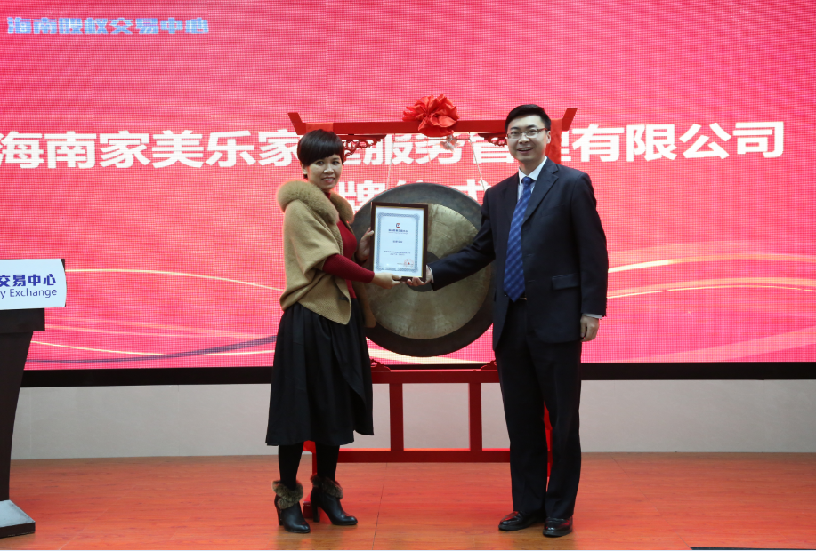 參與本次集體掛牌儀式的企業分別是:海南大信園林股份有限公司、海南高升醫藥科技開發股份有限公司、海南釜王實業股份有限公司、海南軒鳴裝飾工程有限公司和海南家美樂家庭服務管理有限公司。